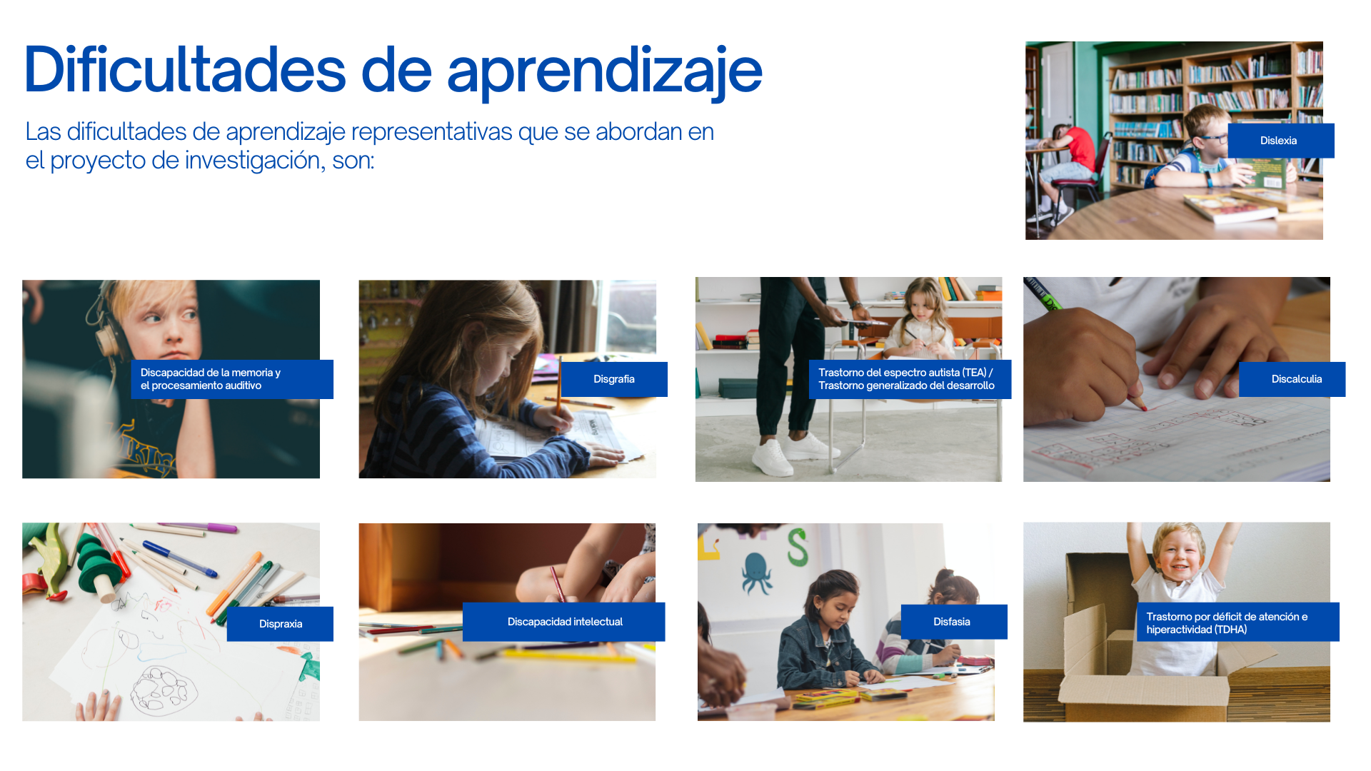 Las dificultades de aprendizaje representativas que se abordan en el proyecto de investigación, son: