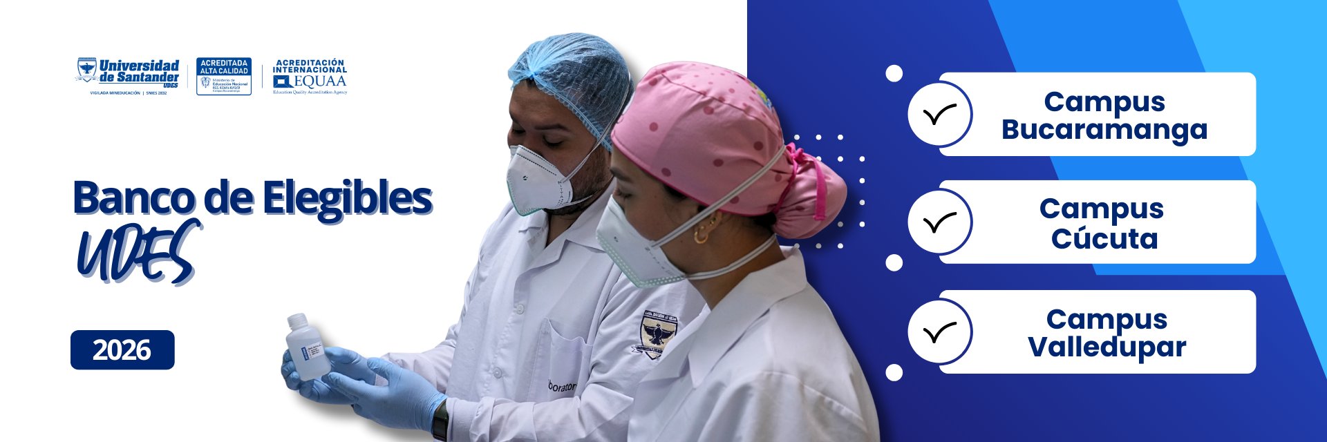 La Universidad de Santander (UDES) anuncia la apertura de Banco de Elegibles 2026, una iniciativa dirigida a profesionales de diversas disciplinas interesados en vincularse como profesores de la Institución.