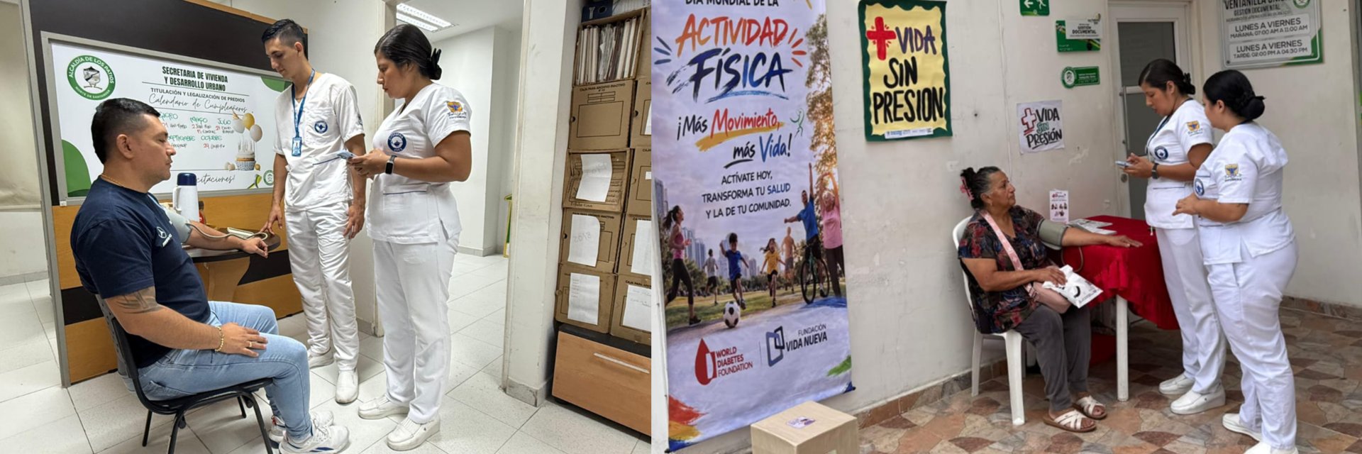 Durante esta actividad, estudiantes y profesores realizaron intervenciones enfocadas en el control cardiovascular, incluyendo la toma y seguimiento de la tensión arterial, valoración de factores de riesgo, y procesos educativos orientados a la adopción de estilos de vida saludables. Estas acciones buscan generar conciencia sobre la importancia del autocuidado y la detección temprana de enfermedades crónicas no transmisibles.